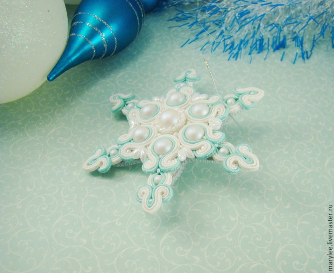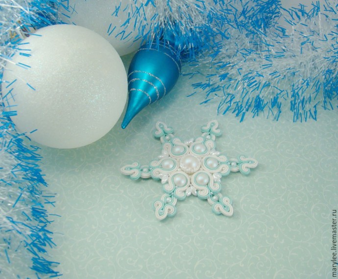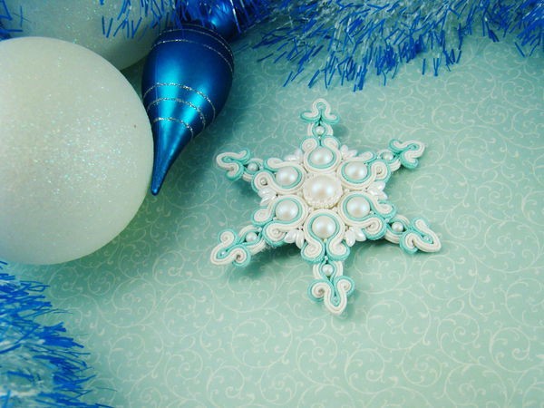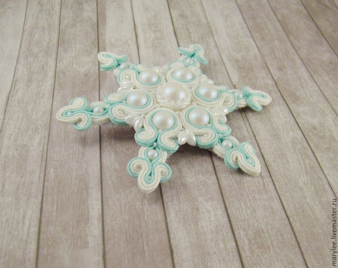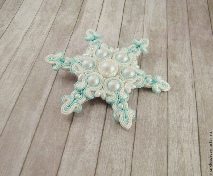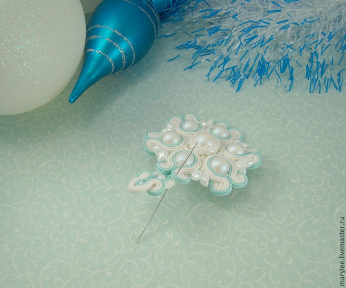 Делаем сутажную брошь-снежинку "Морозная мята"