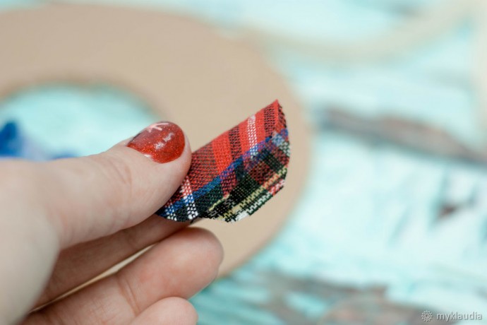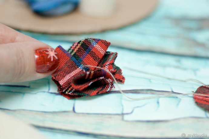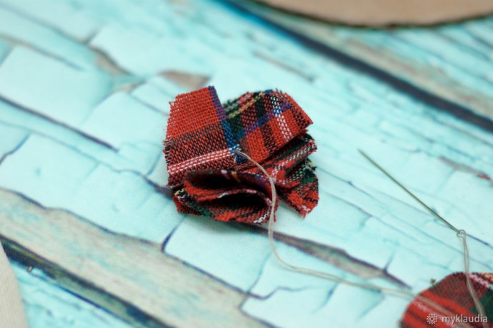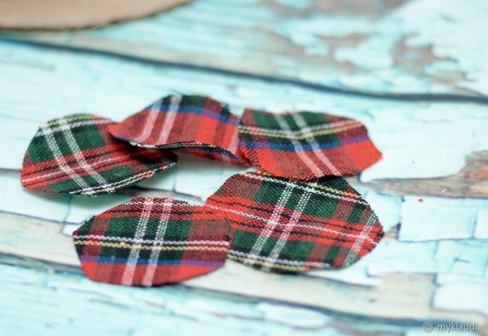Делаем импровизированные цветочки из клетчатой ткани. Что для этого нужно? Нарезаем кружочки, просто на глаз. Не нужно над ними корпеть и выравнивать до идеального.
