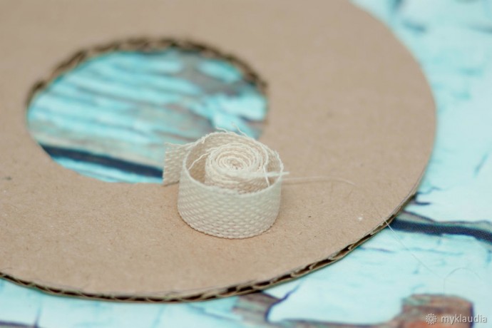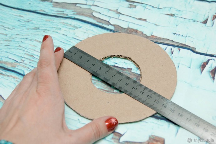 Первое, что необходимо, это вырезать основу веночка. В моем случае, размер был минимален. Мне достаточно 14 см. Вы можете сделать и больше, но и материалов для создания потребуется больше. Разметить круг можно с помощью циркуля, если его нет, как и у меня в прочем, просто обычные предметы — ваза, тарелка, кострюля, кружка и так далее.