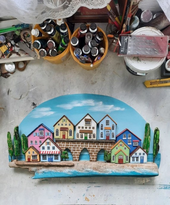 Вот он городок во всей своей красе! Здесь еще нет крючков и веревки, за которую ключница подвешивается, но это уже мелочи. Осталось сфотографировать с использованием фотофона и выставить в магазинчик!