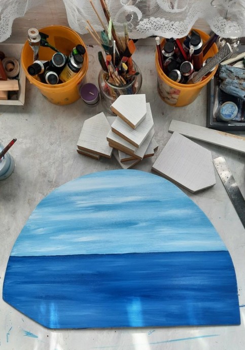 Прокрашиваем фон-фанеру чтобы было небо и море.