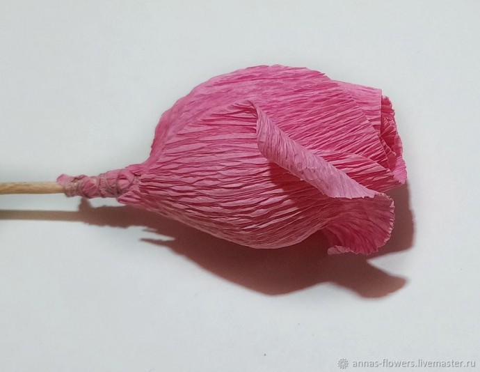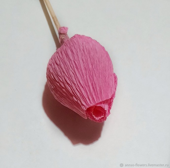 Тейпируем ножку полоской растянутой гофрированной бумаги шириной 1 см или тейп лентой.