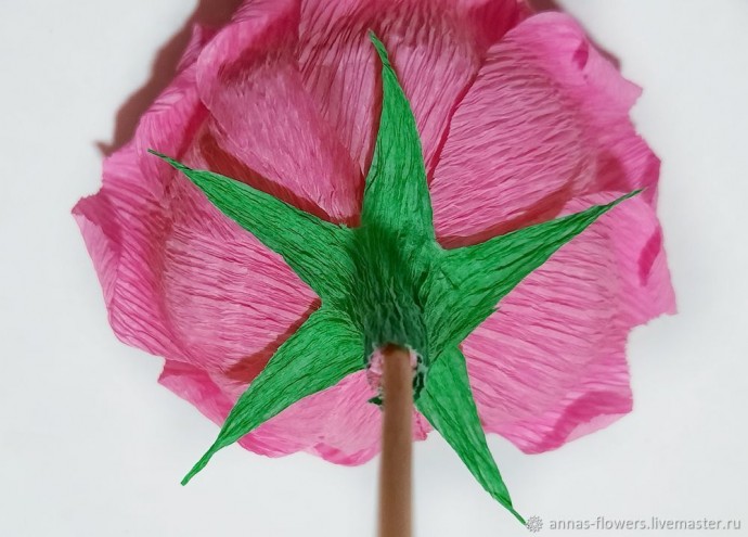 Приклеиваем к розе снизу так, чтобы кончики отгибались от цветка.