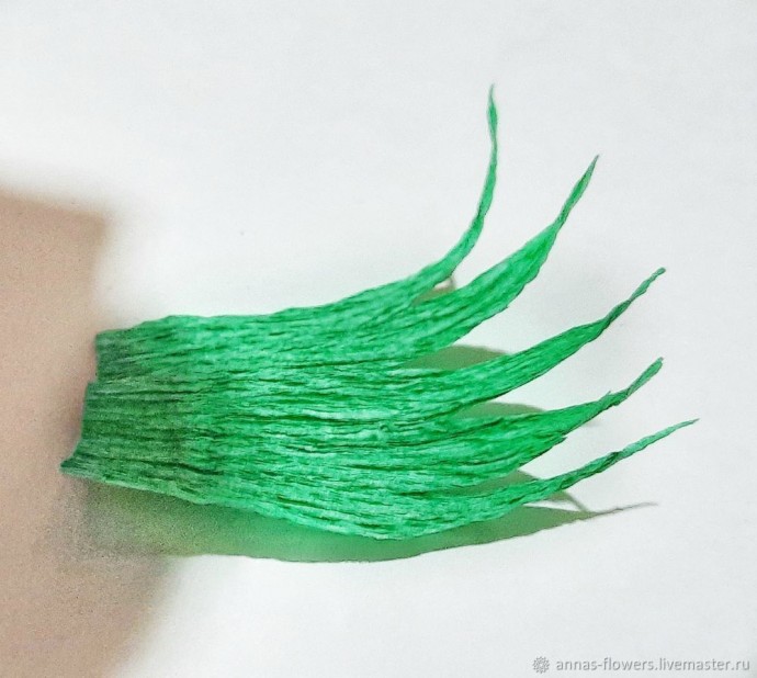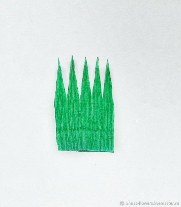 Из зеленой бумаги вырезаем прямоугольник размером 4×6 см. Придаем форму чашелистика.