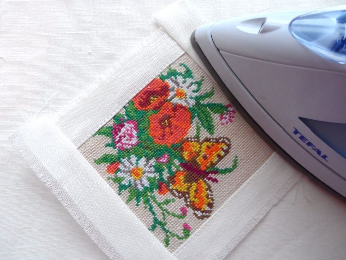 Прогладила, помня о предупреждении приятельницы гладить вышивку с изнанки.