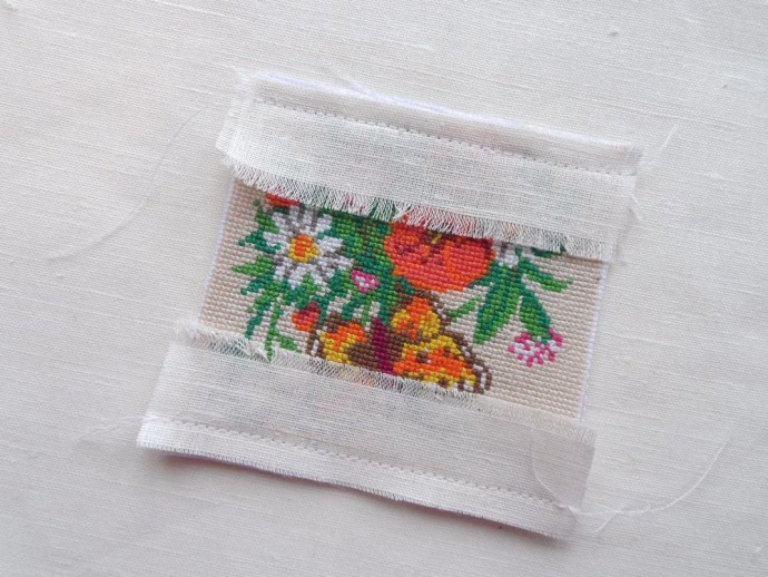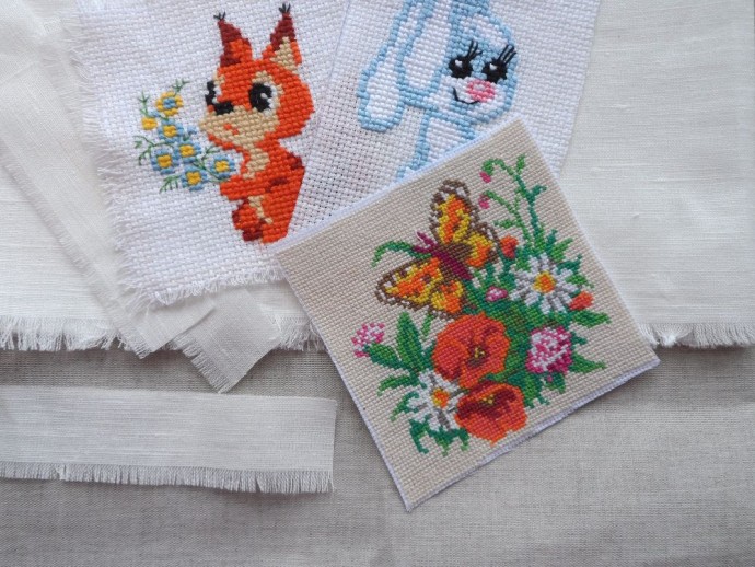 И еще одна маленькая вышивка, оформлю аналогично.Остальные (зайца и белку) просто пристрочу.