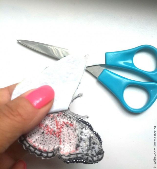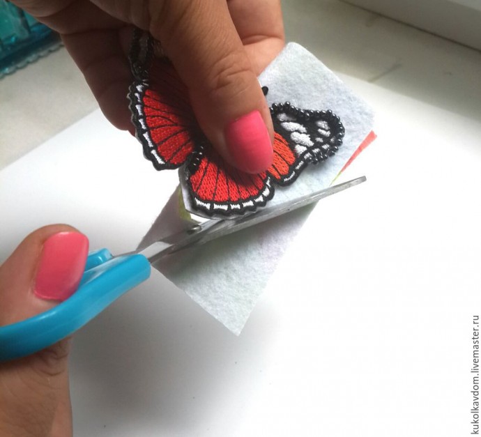 Начинаем с выкройки. У меня есть готовая термоаппликация в качестве лекала. По ней я делаю свои броши.