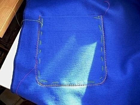 p.s. Уще момент-сначала можно приметать и пристрочить зиг-загом только нижнюю часть кармана-и только потом пристрачивать боковые стороны.