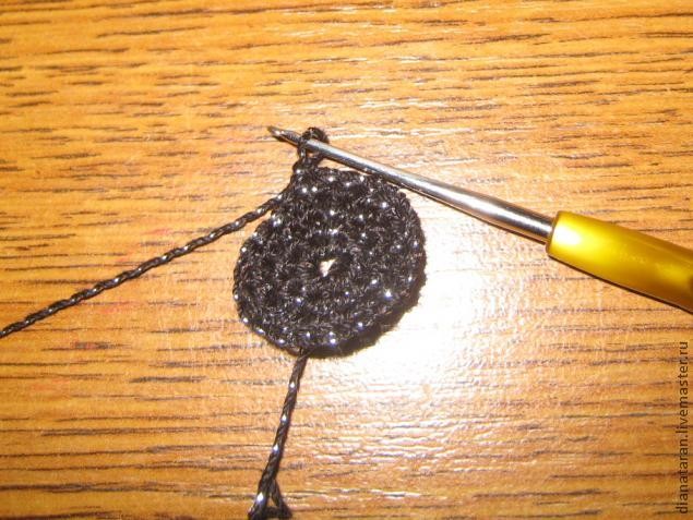 Начинаем: вяжем цепочку из 3-6 воздушных петель. Замыкаем их в кольцо. И обвязываем столбиками без накида.