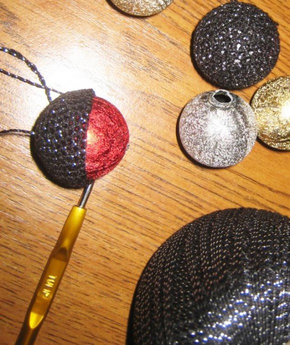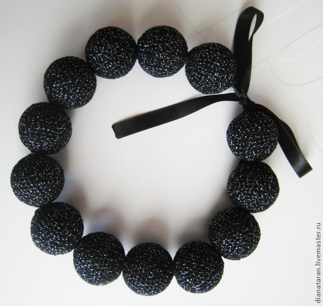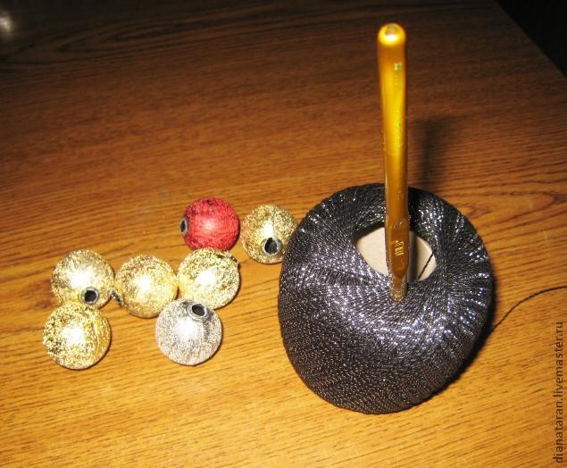 Нам предстоит обвязать все шарики крючком. Затем собрать их в бусы.