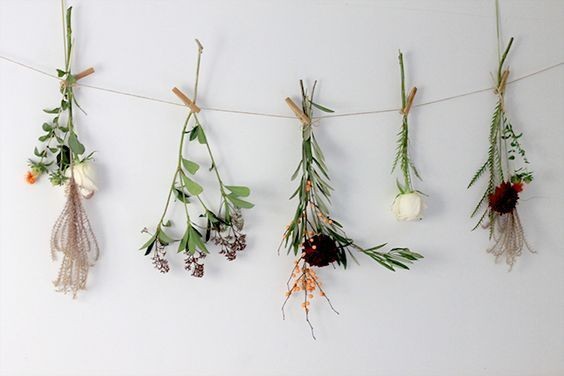 Что нужно: Цветы, нитки или ленты, и место для подвешивания.
