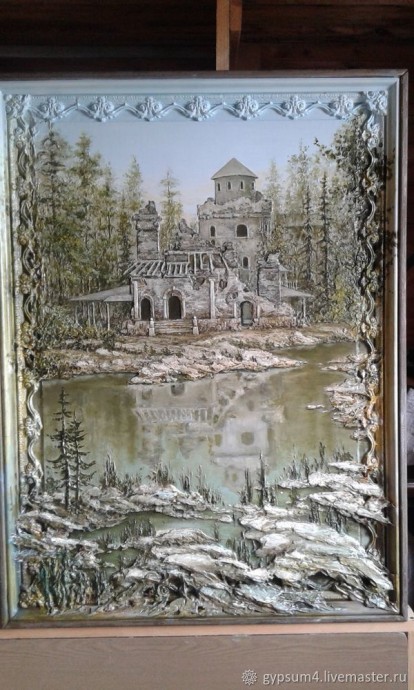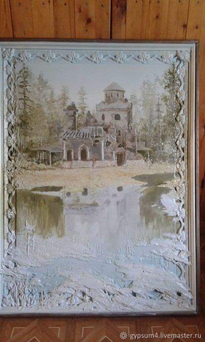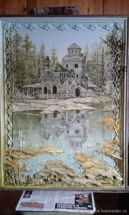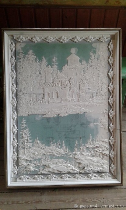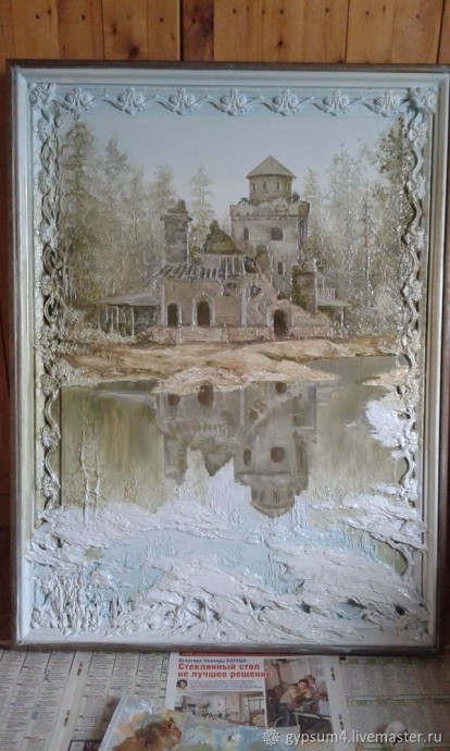 Теперь сама рама. Это гипсовая лепнина. Компонуем всё, смотрим. Снаружи деревянный контур для защиты лепнины.