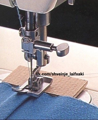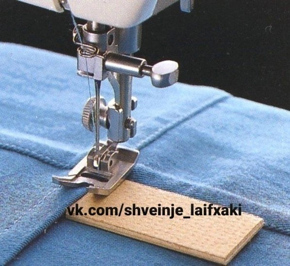 Так советуют проходить толстые швы используя приспособление для толстых швов или,например, кусочек картона.Начало шва. Чтобы выровнять лапку, положите под нее прокладку (например картоночку) и строчите от края ткани.