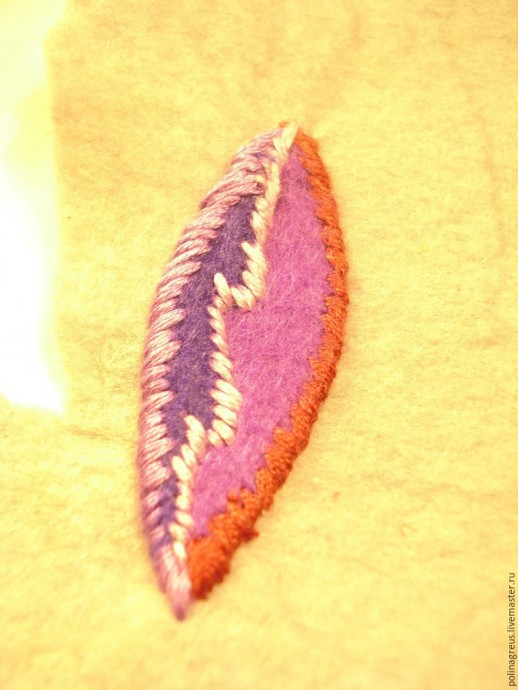 Пришиваем композицию из шнуровых веточек, причем каждый шнурок прокалываем иголкой в обязательном порядке, а то непременно сбегут.