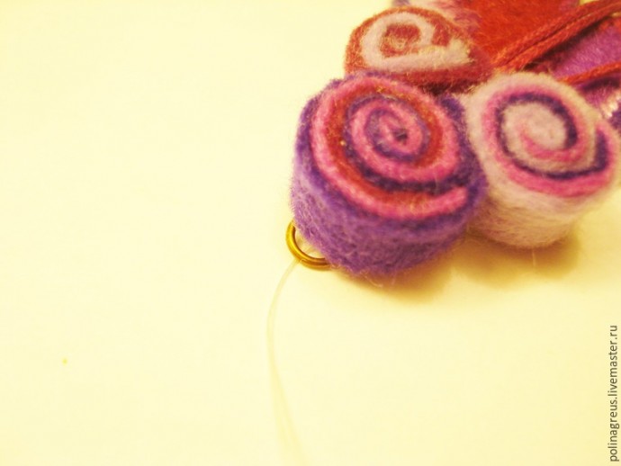 Для придания завершенности крепим с изнанки три веточки из шнура.