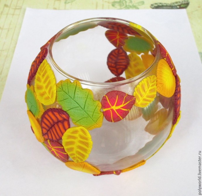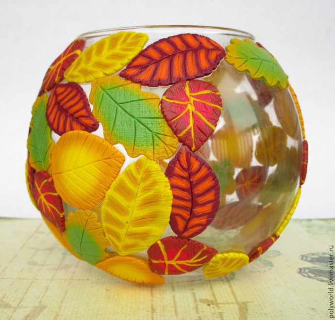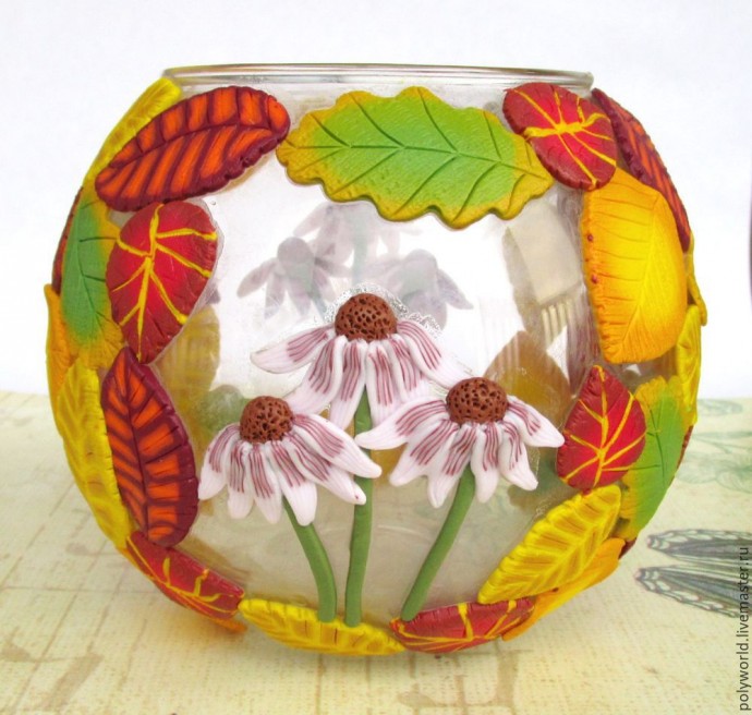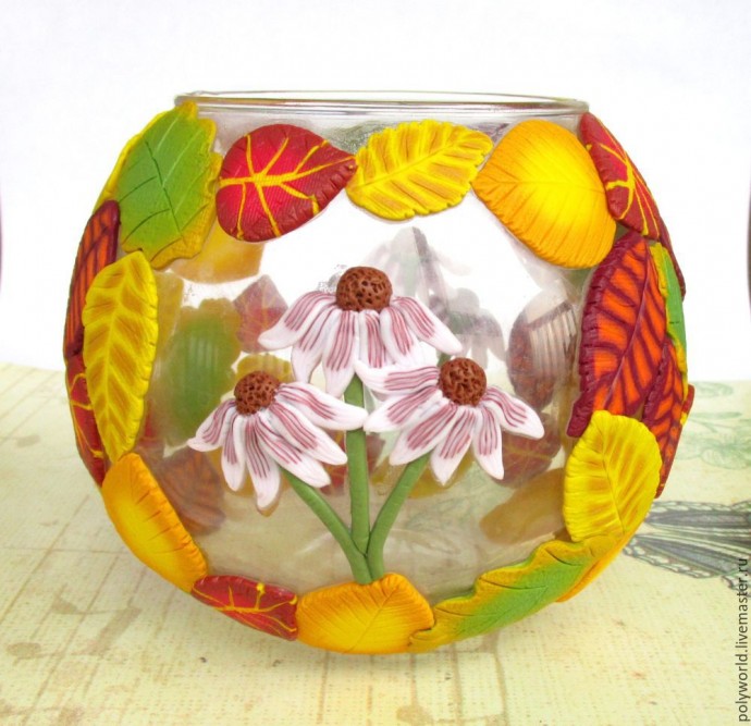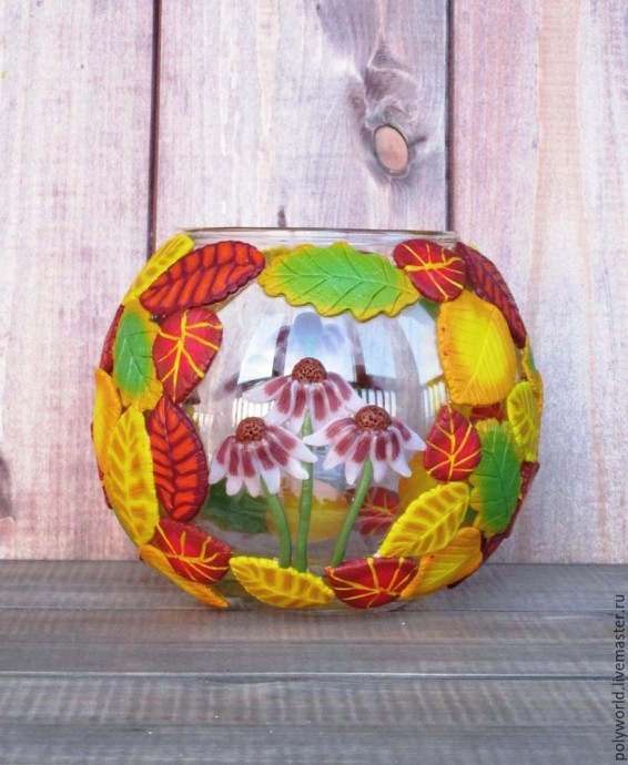 Ваза "Осенняя фантазия" с декором из полимерной глины: часть 3