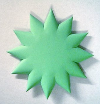 Таким же способом мы в 80-тые на Новый год делали обьемные шары.Вырезаются одного диаметра 10-12 кругов.Разрезается почти до середины.Также сворачиваются кончики,только поуже.Затем нанизываются на иголку с ниткой по середине все круги и затягиваются. И готов красивый шар.