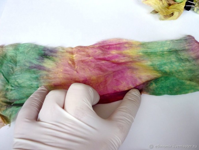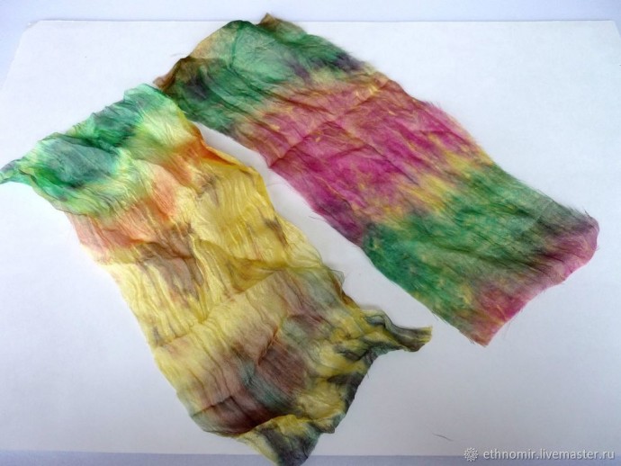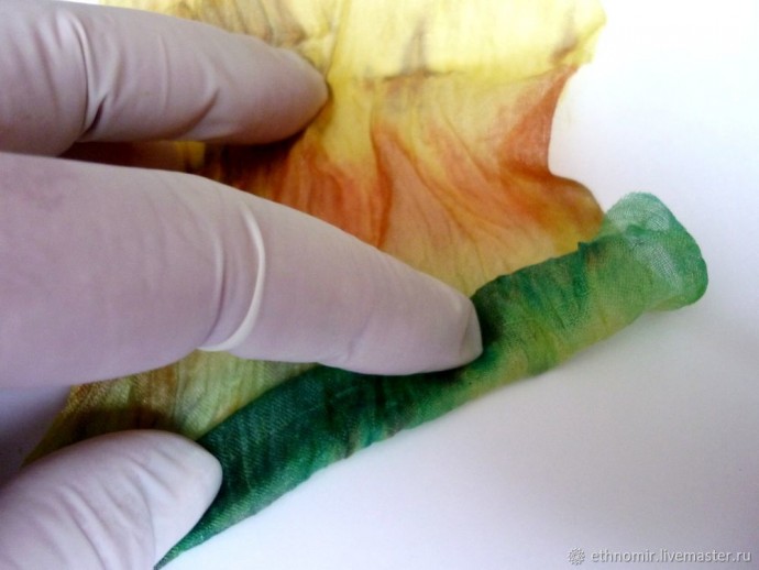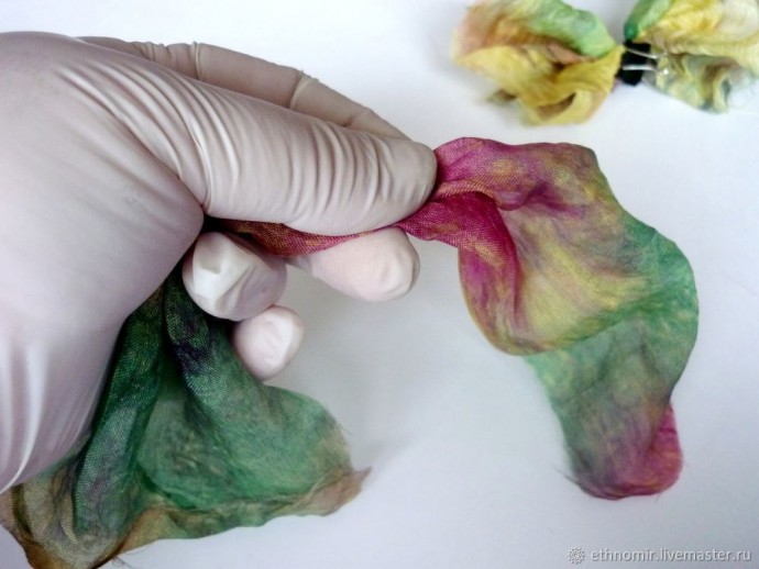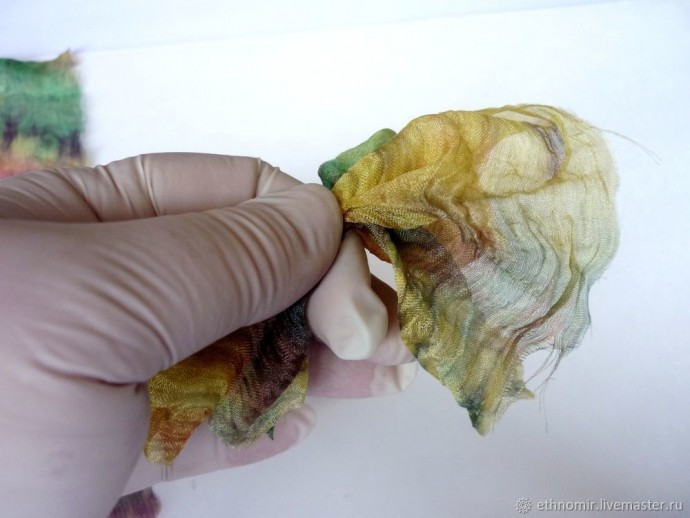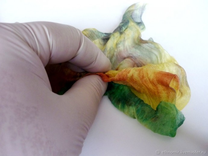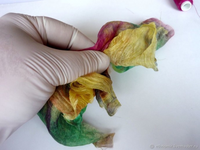 Пока наша заготовка запекается, разберёмся с кусочками шёлка.