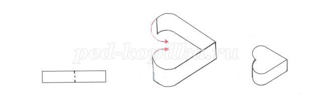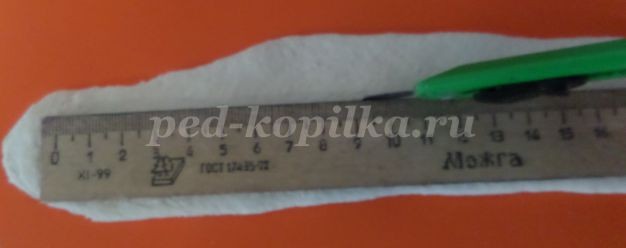 Для переноса деталей и для выделения прожилок на листьях делаем лопаточку: вырезаем полоску 1,5 см на 6,5 см, затем один из уголков отрезаем, так чтобы короткая сторона была 0,7 см.