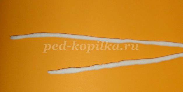 5. Из теста скатать две колбаски. Закрепить с помощью клея на концах кольца.
