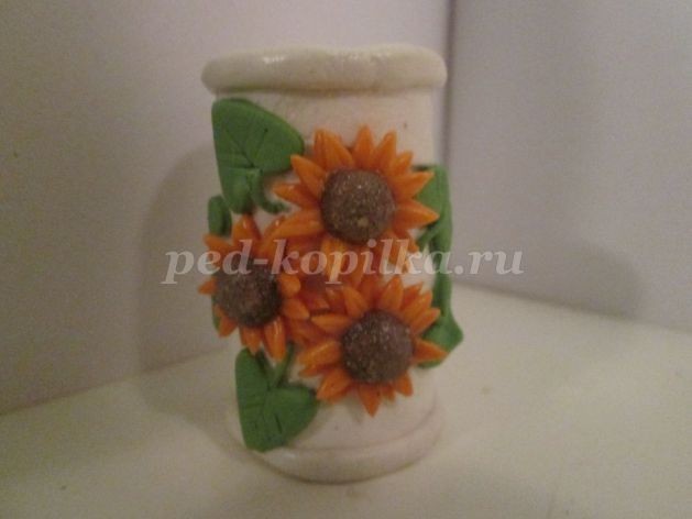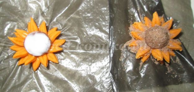 7. Клеем ПВА смазать серединки у цветов, затем присыпать песком.