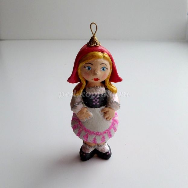Ёлочная игрушка "Красная шапочка из опилок": часть 3