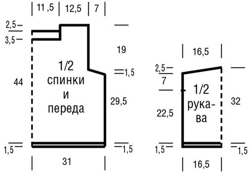 Оставшиеся 32 п. плеча закрыть в одном ряду через 50 cм = 156 р. от нижней планки.