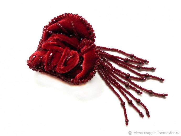 Сегодня хочу предложить вам создать вот такую бархатную розу. У меня это брошь. Вы можете использовать розочку как аппликацию, фрагмент колье, серьги, клипсы... Вариантов великое множество