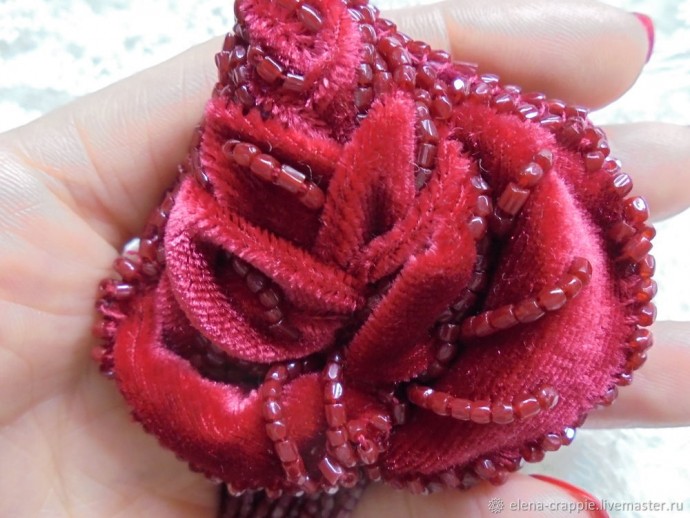 Часть 2 https://www.diyideas.ru/44924-sozdaem-rozu-iz-barhata-i-bisera-chast-2.html