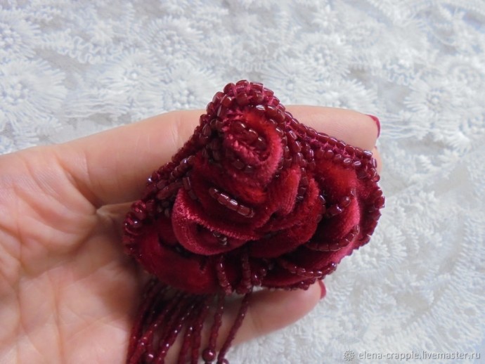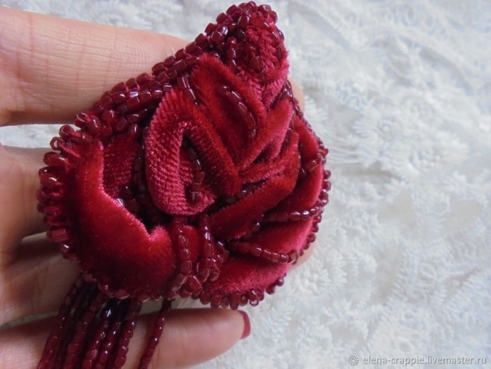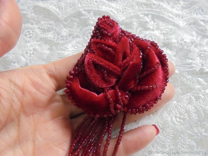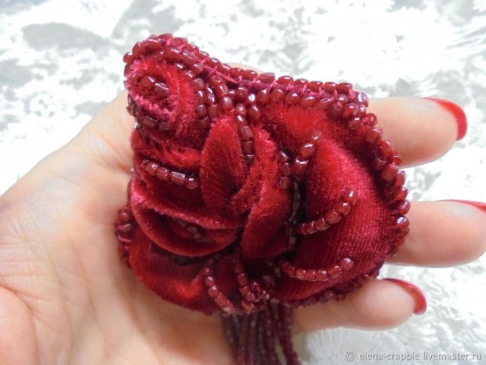 Часть 2 https://www.diyideas.ru/44924-sozdaem-rozu-iz-barhata-i-bisera-chast-2.html