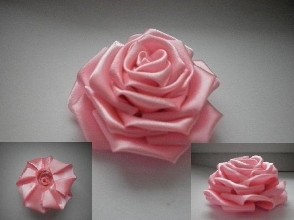 Роза канзаши из круглых лепестковРоскошная роза получается настолько красивой, что глаз не оторвать.
