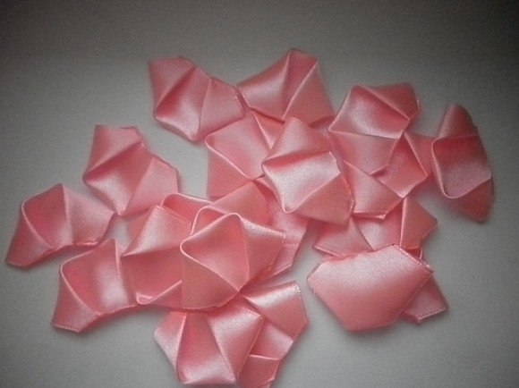 Роза в технике канзаши: мастер-класс, часть 4Автор Кудрякова Ольга.23. Для второго круга тоже используем 6 штук.24. Для 3 и 4 круга я уменьшила оставшиеся лепестки. Подогнула уголк...