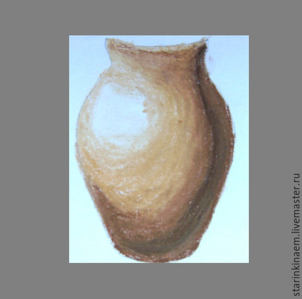 Если вам трудно сразу определиться с оттенками цветов, советую для образца нарисовать и раскрасить вазу цветными карандашами. Вот примерно так (рис. 2) (Ну сильно не старалась, просто чтобы понятно было, где свет, где тень...)