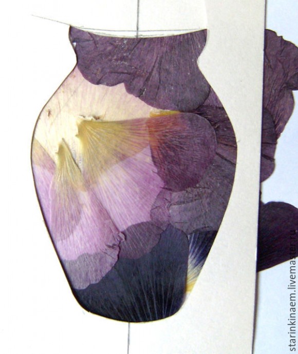Усиливаем места тени от собственно вазы. Можно делать тень, используя неудачно высушенные лепестки или те, которые темнее (рис. 8).