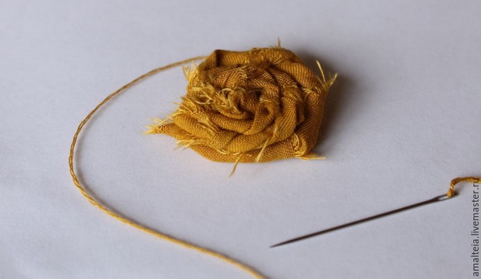 А сама приступаю к верчению броши. Сначала серединка. Может кто-то делает это по-другому. Я показываю только свою технику. Я отрываю от кусочка ткани полосочку.