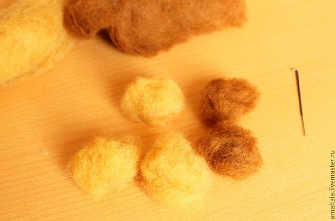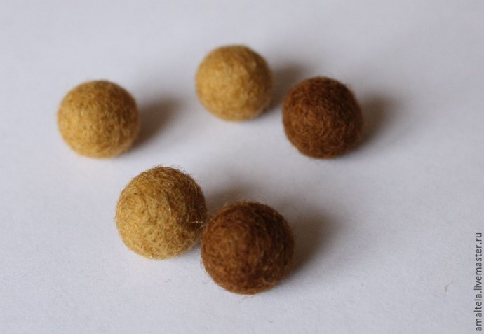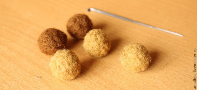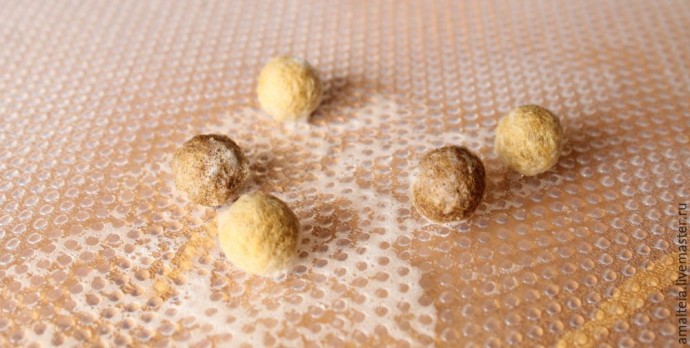 И начинаю валять иголкой, вот такие они получились на первом этапе. Видны дырочки, они еще довольно мягкие, а мне надо сделать их гладкими и твердыми.