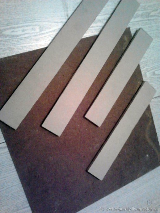 Затем нарезала полосы из гипсокартона (9 мм толщиной) шириной 5 см и длинной равной сторонам ДВП.