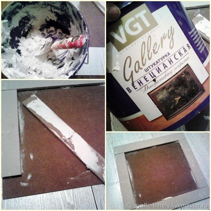 Приклеила эти полосы на ДВП венецианской штукатуркой (она у меня осталась немного, не выбрасывать же).