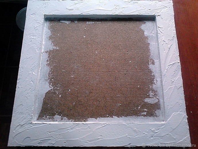 Итак, взяла кусок ДВП (у меня был размер 40х42см ). Вместо грунтовки промазала его шершавую сторону акриловым лаком.