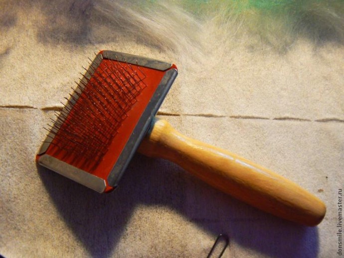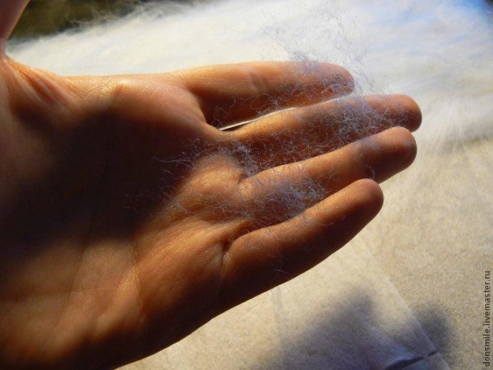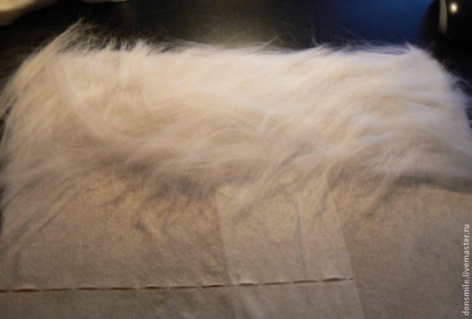 Из получившегося в результате «расчёсывания» клочка шерсти отрываем очень короткие, полупрозрачные прядки (похожие на пушок). Нам необходимо создать ощущение тумана на заднем плане.