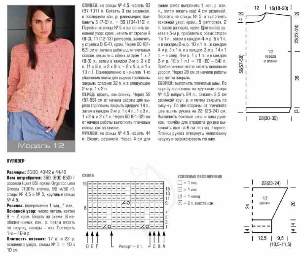 Ажурный пуловер спицами