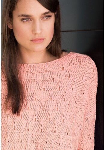 Летний пуловер спицамиЛетний пуловер с очень красивым узором вяжется по прямой, а рукава надвязываются по готовому изделию платочной вязкой.Размеры: 36/38 (46/48).Потребуется:Пряжа...
