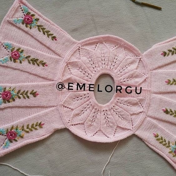 Вязаное платье с вышивкойУ вас есть, как минимум, два варианта:1. вышить розу крестиком,2. связать розу в технике жаккарда.
