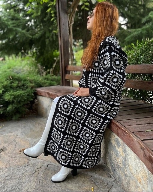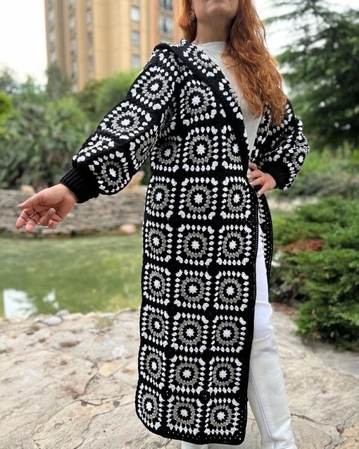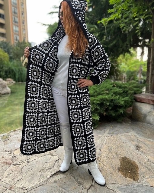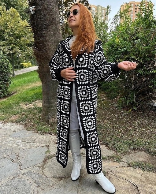 Жакет или вязаное пальто из мотивовМотивы - это модно.А ещё: стильно, ярко и легко.