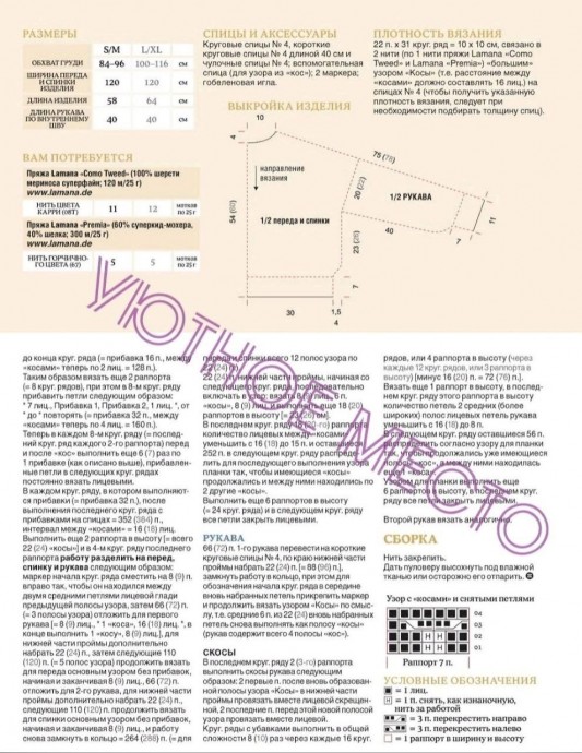 Яркий джемперРазмеры: 42 (44/46) 48/50Размеры российские: 48 (50/52) 54/56Вам потребуется: 550(600) 700 г оранжево-коричневой пряжи «Cool Wool Big» (100% шерсти, 120 м/50 г) Lana G...