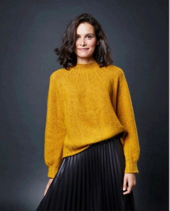 Джемпер ажурный спицамиРазмер 36/38 (40) 42 (44/46)Потребуется: Пряжа (60% хлопка, 40% полиакрила; 90 м/50 г) — 500 (550) 600 (650) г желтой; спицы №4 и 4,5.Узоры и схемы:Пл...