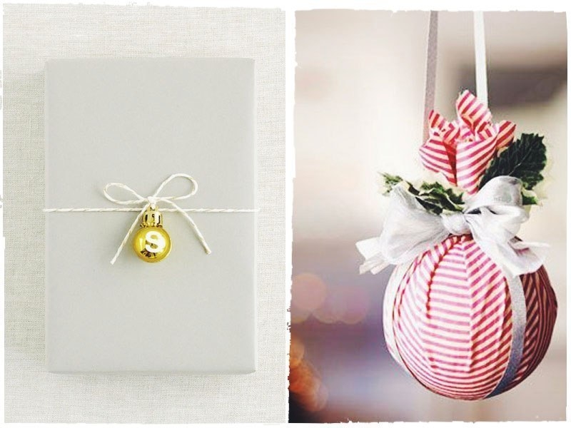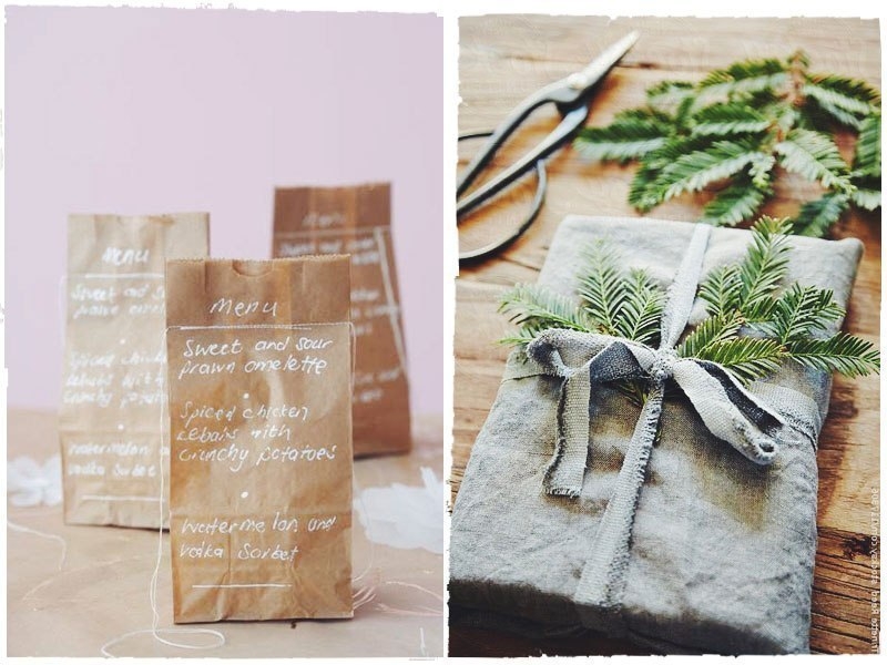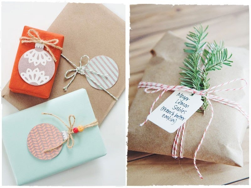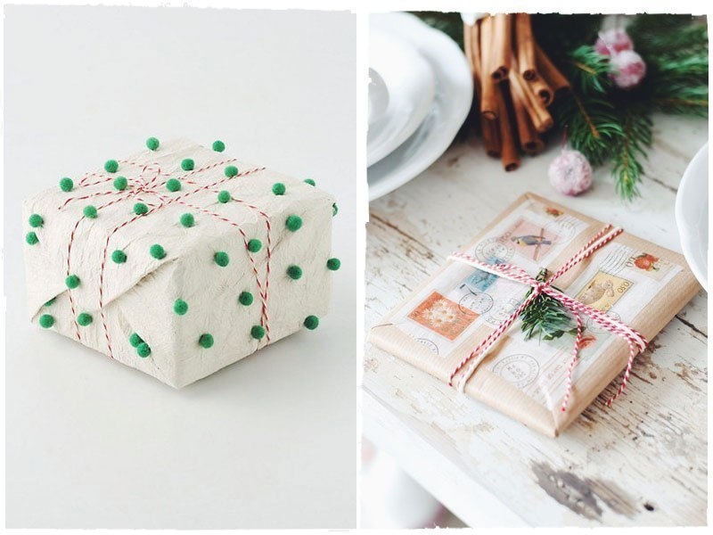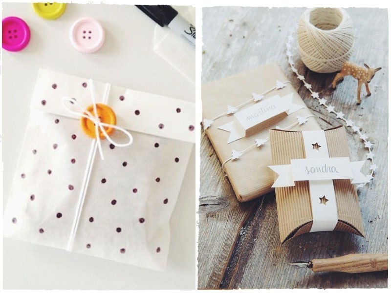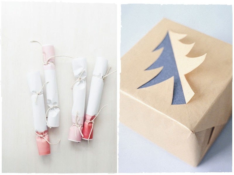 очень оригинальные подарки - смятые бумажные трубочки, небрежно перевязанные нитками (слева в последнем ряду)