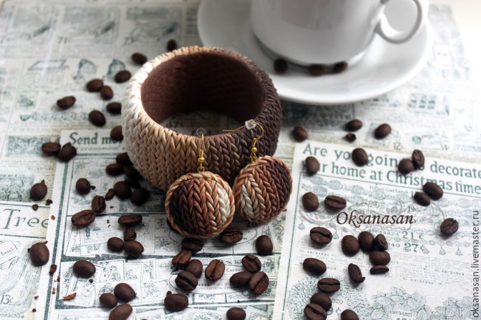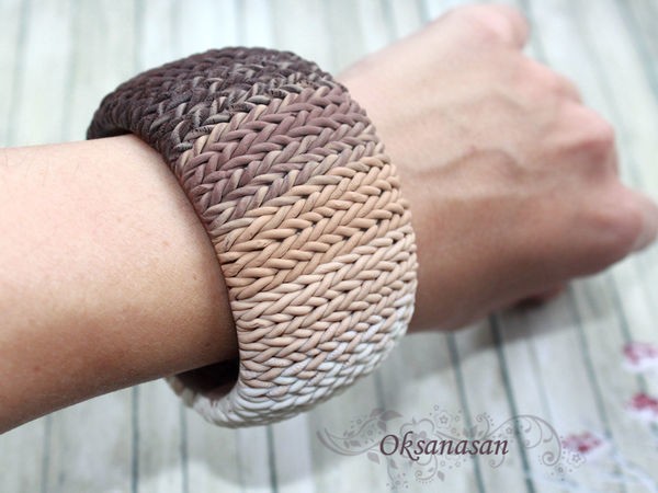 Вы любите кофе? Какао? Шоколад? Значит, вам должна понравиться цветовая гамма этого браслета. Он выполнен из полимерной глины, а смотрится как вязаный, поэтому отлично сочетается с трикотажем.