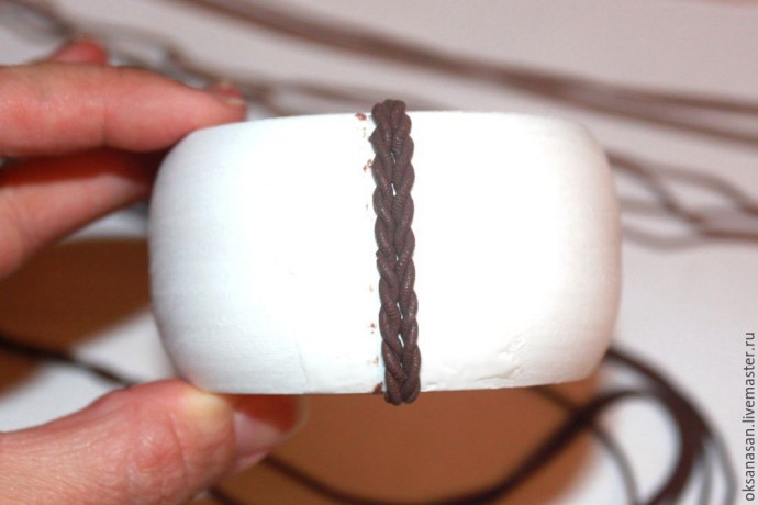 Слегка прижимайте скрученные веревочки друг к другу и добавляйте следующие. Края загибайте внутрь, поэтому и там необходимо было нанести гель.