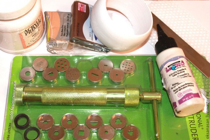 Для изготовления браслета вам понадобится полимерная глина от коричневого до белого цвета, то есть вы можете купить коричневую и белую пластику и, смешивая их в разных пропорциях, получить несколько нужных оттенков. А если у вас есть эти цвета глины, можете использовать их.